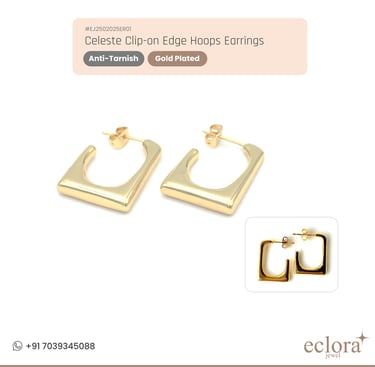 Celeste Clip-on Edge Hoops, 18K Gold Plated Earrings