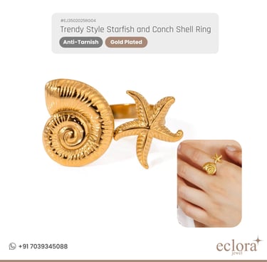 Trendy Style Starfish and Conch Shell Gold Plated Ring