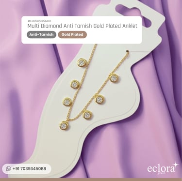 Multi Diamond Anti Tarnish Gold Plated Anklet