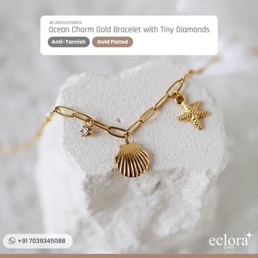 Ocean Charm Gold Bracelet with Tiny Diamonds